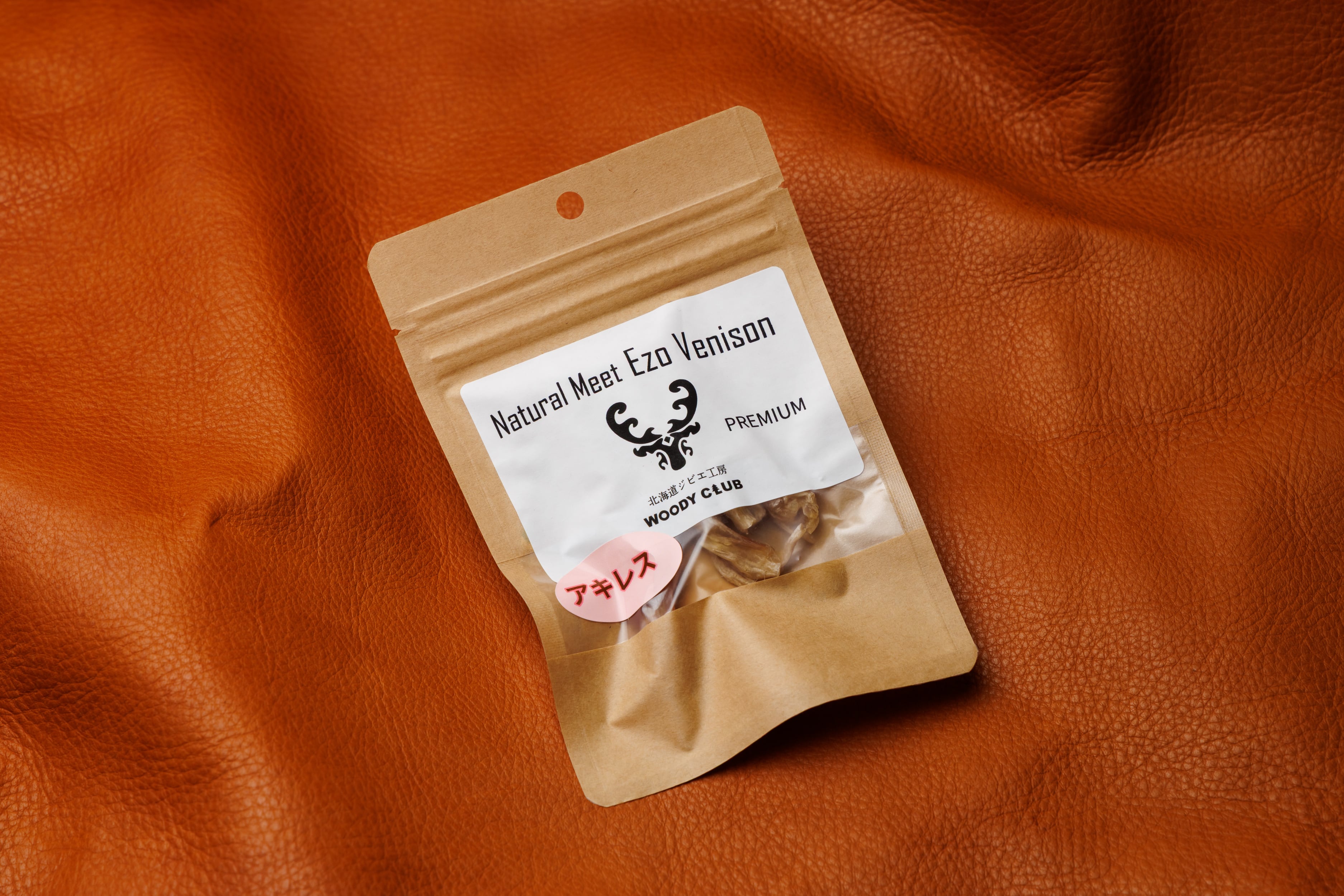 「ペット用アキレス」は、一頭から4本しかとれない貴重なアキレス腱を使用。食べやすさと美味しさを両立しています。犬の歯に優しい形状で、噛み応えもありますので、噛むことで歯垢が予防される効果も期待できます。さらに、良質なたんぱく質も豊富に含まれているので、健康維持に。