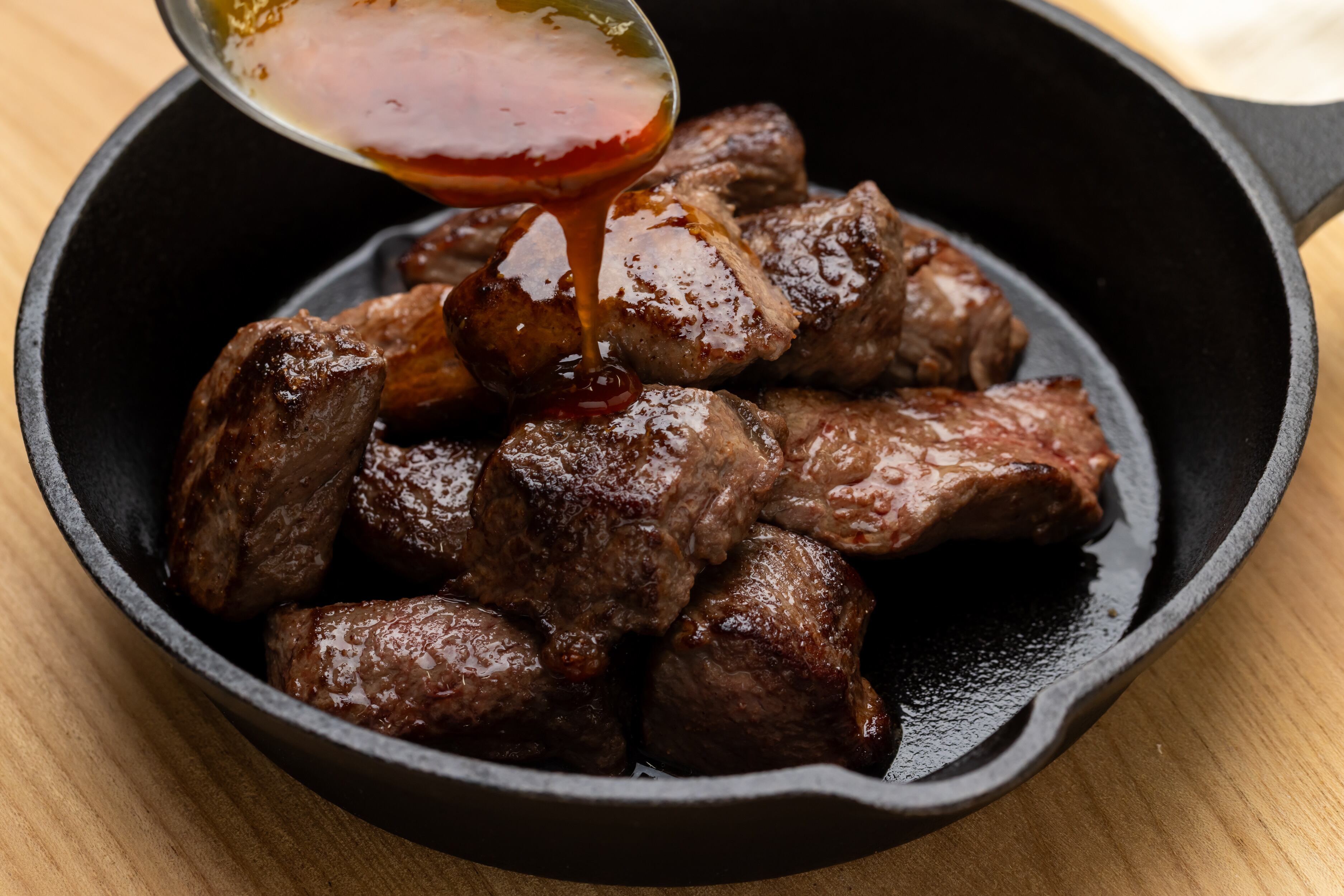 北海道の大自然で育まれた新鮮なエゾ鹿肉を、食べやすいサイコロステーキにカットしました。贅沢な味わいと柔らかさを兼ね備え、一口食べるたびにジューシーな肉汁が広がります。